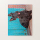 Scottish Terrier sitzt vor einer farbenfrohen Tür Puzzle