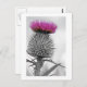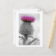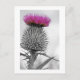Eine Karte für Schotte oder alle, die in Touch mit Freunden und Familienmitgliedern schottischer Herkunft kommen, oder jemanden aus Schottland zu verweisen. Das Design auf der Karte ist ein originales nahes Foto einer lila schottischen Blume. Nur der lila Blume Kopf der Pflanze ist farbig, die Erholung des Bildes ist schwarz-weiß.