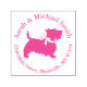 Eine hübsche schottische Terrier-Silhouette auf rosa Hintergrund ist perfekt für ein süßes kleines Mädchen unterwegs! Der Scotty Hund ist ideal für einen Hundefreund mit einem Baby unterwegs oder einer neuen Welpendusche!