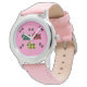 Kinderuhr aus Edelstahl mit rosa Lederarmband