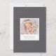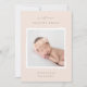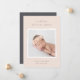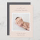 Elegante Geburtsankündigung in sanften Farben mit einem quadratischen, neugeborenen Foto, gerahmt in Weiß, mit "Welcome [Name]" an der Spitze in schicken grauen Schriften. Personalisieren Sie das Geburtsdatum des Babys und die Geburtsdaten darunter, und fügen Sie eine persönliche Nachricht auf den Rücken, zusammen mit einem zusätzlichen Foto.