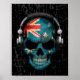Scratched Australian Dj Skull mit Kopfhörern Poster