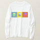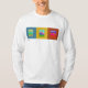 Scratchy Buttes-Triptychon-T - Shirt. Ursprüngliche Kunst durch GLetzArt. Helles, buntes, Serienbild der südwestlichen Landschaft mit hell farbigen Buttes und Himmel in drei Veränderungen.