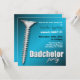 Cooles, blaues Quadrat #dadchelor Einladungen mit einer großen grauen Schraube. "Join us uns für ein paar männliche Spaß, wie (Vater zu sein) erwartet Baby #1".