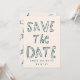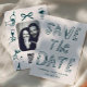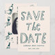 A playful and modern save the date card featuring your own photo and a customizable QR code.