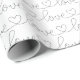 Whimsikisches, aber modernes Packpapier in schicken Schwarz-Weiß weist ein Wiederholmuster von "Liebe" in handgeschriebenen Stil monoline Skripttypografie, verbunden mit Herzen. Eine einzigartige Wahl für Hochzeitsgeschenke und Valentinstag Leckereien!