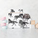 Schlichtes und einfaches schwarz-weißes Packpapier mit einer Herde von gallopierenden und lustigen Pferden - perfekt für Geschenke für Ihre verrückten Pferd-Freunde!