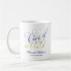 Eine elegante Skript-Schriftart-Klasse von 2021 Abschluss personalisierte mug. In Blau und Gold dargestellt. Ideal für einen High School Senior Abschluss oder Uni-Abschluss. Designs sind flache gedruckte Illustrationen/Grafiken - NICHT AKTUELLE GOLD FOIL.