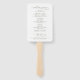 This wedding program hand fan features elegant script calligraphy on a clean background. The elegant yet simple design blends modern style with a soft, romantic feel. Perfect for outdoor or warm-weather weddings, it helps guests stay comfortable while clearly presenting the ceremony details. Fully customizable with names, date, message and order of events.