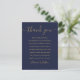 Script Dankeschön an die Navy Blue Gold Wedding Pl Postkarte