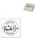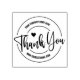 Skript "Danke" Design mit individuellem Firmennamen und Standort in einem Kreis Rahmen.