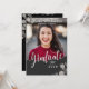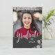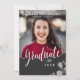 Script Foto Graduation Party Einladung mit dem Foto des Absolventen auf der Vorderseite und ein zweites graduate Foto auf der Rückseite. Schreib- und Silberschimmer-Sechseckfiguren machen diese Gra-Einladung elegant und chic.Feiern Sie Ihren Abitur stilvoll mit diesen eleganten Graduationseinladungen.