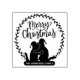 Die Briefmarke "Frohe Weihnachten" ist mit einem Kranz mit ein paar Katzen und Familienname versehen.