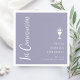 Diese einfachen und dennoch klassischen 1. Communion Cocktailserien wären perfekt für die Person, die Sie Liebe Erste Kommunion feiern. Sie enthalten die Worte "1. Kommunion" in einem modernen Skript-Schriftart, einen Chalice mit dem Eucharisten, den vollständigen Namen der Person, die ihre Erste Heilige Kommunion erhält, das Datum und den Ort ganz in Weiß auf lila.