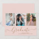 Script Graduate 3 Foto Collage Pink Abschluss Ankündigung. Für weitere Anpassungen klicken Sie bitte auf die Schaltfläche "Anpassen" und verwenden Sie unser Designwerkzeug, um diese Vorlage zu ändern.