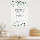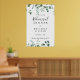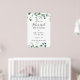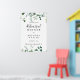 Dieses Drehbuch Grün Grün Grün Probe Dinner Willkommensschild ist perfekt für eine moderne Hochzeitsfeier Probe. Das Design ist mit Aquarellfarben handgezeichnet eleganten botanischen Eukalyptuszweigen und Blätter, die in schönen Bouquets und geometrischen Mustern angeordnet sind.