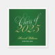 Elegante Script-Schriftart-Klasse von Papierservietten 2025 Abschluss. In Gold, weiß und grün dargestellt. Perfekt für einen Abschluss, Uni-Abschluß oder Abschlussfeier in der Oberstufe! Designs sind flache gedruckte Illustrationen/Grafiken - NICHT AKTUELLE GOLD FOIL.