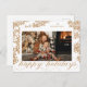 Dieses elegante Foto Postcard empfängt Sie mit einem handgezeichneten Rahmen mit goldenem Winterblättern und einem geblüht Drehbuch, in dem Sie den "Happy Houses" lesen und ein individuell gestaltetes Foto für einen Single im klassischen, traditionellen Urlaubsstil betonen. Die Rückseite ist als Postkarte für einfaches Mailen Set.