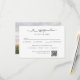 Designed for the modern couple, this card replaces clutter with convenience. A prominent QR code allows guests to instantly RSVP online, while the remaining space is perfectly utilized to share essential wedding details, from accommodations and reservations to venue directions. Flip the card over to reveal a personal touch: a full-bleed photo of you and your partner. It’s the perfect marriage of minimalist style, modern efficiency, and heartfelt personalization.