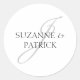 Script J Monogram Labels (silber / schwarz) Runder Aufkleber