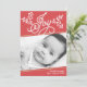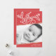 Elegante und moderne Weihnachtskarte in Rot, die "Joy" sagt, fügen eine personalisierte Nachricht und Foto auf der Rückseite der Karte.