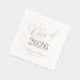Elegante Script Schriftart Klasse von 2025 Abschluss silberne Folie Papierservietten. Ideal für eine High School Senior Graduation Party oder Uni-Abschluß Party.