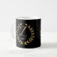 "Script Letter Z Monogram Black n Gold Name Coffee Tasse." Klassischer und eleganter, handgezeichneter Goldblattkranz mit dem Schriftzeichen-Monogramm, Alphabet-Buchstabe Z in Gold-Glitzer. Ihr Vor- oder Nachname ist nach Wunsch personalisiert. Kunst des international lizenzierten Künstlers Audrey Jeanne Roberts, Urheberrecht.