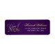 Elegante Script-Schriftart-Klasse von Abschluss-Rücksendeadressen-Aufklebern 2021. In Gold, weiß und lila dargestellt. NICHT AKTUELLE GOLDFOLIE