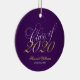 Diese elegante Skript-Schriftart-Klasse von 2020 Abschluss-Ornament ist ein wunderbares Keepake-Geschenk. In Gold, weiß und lila. Designs sind flache gedruckte Illustrationen/Grafiken - NICHT AKTUELLE GOLD FOIL.