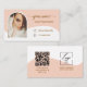 Modern style pink arched photo background with script typography with logo , Qr code social handle, email, phone number and website option . Perfect elegant minimalist card for nail tech, makeup artist, hair stylist, Coaches & consultants.