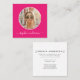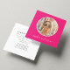 Die moderne und schicke Visitenkarte/Visitenkarte präsentiert Ihr Foto in einem Instagram-Stil-Kreis, umgeben von einer heißen rosa Kulisse in handgeschriebener Schrift-Kalligrafie. Auf der Rückseite ist viel Platz für Social Media Handler und andere Kontaktinformationen.