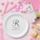 Script Monogram Schwarz-weiß Elegant Wedding Pappteller