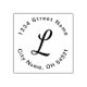 Diese elegante, benutzerdefinierte Briefmarke verfügt über ein hübsches Skript, das in der Mitte des Designs anfänglich platziert wurde, wobei die Rücksendeadresse um das Monogramm in gebogenem Text geschrieben ist.