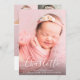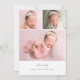 Moderne Geburtsankündigung mit moderner Schrift und Foto-Collage auf der Rückseite.