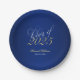 Elegante Skript-Schriftart-Klasse von 2025 Graduierungsparty Papier-Teller. In Gold, Weiß und Marineblau dargestellt. Ideal für Abschluss, Uni-Abschluß oder Abschlussfeier. Designs sind flache gedruckte Illustrationen/Grafiken - NICHT AKTUELLE GOLD FOIL.