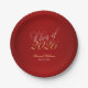 Elegante Skript-Schriftart-Klasse von 2025 Graduierungsparty Papier-Teller. In Gold, weiß und rot dargestellt. Ideal für Abschluss, Uni-Abschluß oder Abschlussfeier. Designs sind flache gedruckte Illustrationen/Grafiken - NICHT AKTUELLE GOLD FOIL.