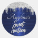 Script Sweet 16 Birthday Silver Glitzer Blue Runder Aufkleber