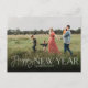 Elegant glückliche neue Jahreskarte. Moderne Foto Postkarte mit lustiger und spielerischer Typografie und einem leuchtenden und farbenfrohen Rücken (sie ist editierbar, wenn Sie "weiter anpassen"), ist diese horizontale Karte mit einem Foto perfekt, um Neujahrsjubeln zu senden. Senden Sie Wünsche für ein wunderbares neues Jahr an Freunde und Familie mit Text, den Sie anpassen können.