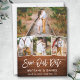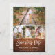 Moderne Pinselschrift Rustikales Holz Rettete unsere Date 4 Foto Couple Verlobung Announcement Card