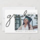 Feiern Sie Ihren Absolvent mit dieser modernen und eleganten Ankündigung eines Abschlusses mit dem handgeschriebenen Wort "grad" in schwarz und das Foto Ihres Absolventen. Ideal für Absolventen der Hochschule oder Uni. Text ist anpassbar. Teil einer Sammlung von Parcel Studios.