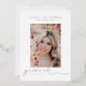 Graduate Skript, in Folie. Abschluss 4 Foto Ankündigung/Einladung. Single Foto vorne, 3 Fotos hinten mit rostorangefarbenem Hintergrund und Details zur Feier.