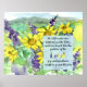 Christian wall home decor poster print featuring a scripture from the Bible book of Isaiah 51:3 KJV "desert like the garden of the Lord..." and decorated with bright summer wildflowers in a desert landscape painted in shades of bright yellow and purple.