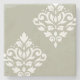 Scroll und Blattdämpfe wiederholen das Design in weißem Detail auf einem grünen Hintergrund.