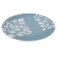 Scroll und Blattdämpfer mit weißen Details auf hellblauem Hintergrund in einem modernen Kunstdruck.