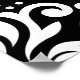 Scroll und Blattdämpfe im Vintagen Stil, groß, mit weißem Detail auf schwarzem Hintergrund.