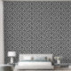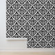 Scroll Damask Muster Schwarz auf Weiß Tapete