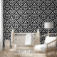 Scroll Damask Muster Weiß auf Schwarz Tapete