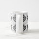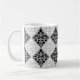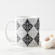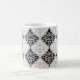Scroll- und Blattdämpfe im Vintagen Stil, Schwarz-Weiß-Details auf grauem Hintergrund.