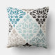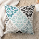 Scroll Damask XLg Muster Teals Browns White Kissen