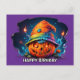 Scrollantern mit Geburtstagshut pyschedelisch Postkarte